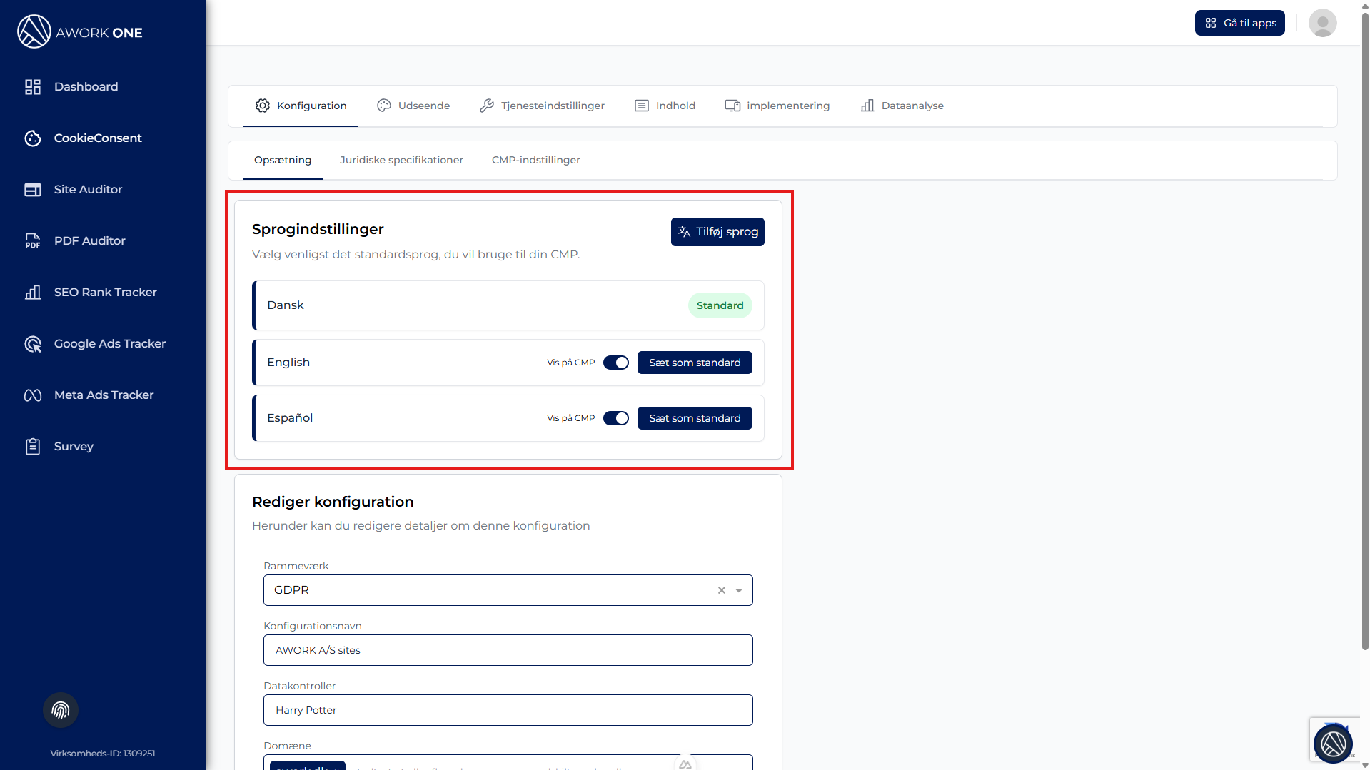 Trin 3: Aktivér Vis i CMP, hvis brugerne skal kunne se sproget.