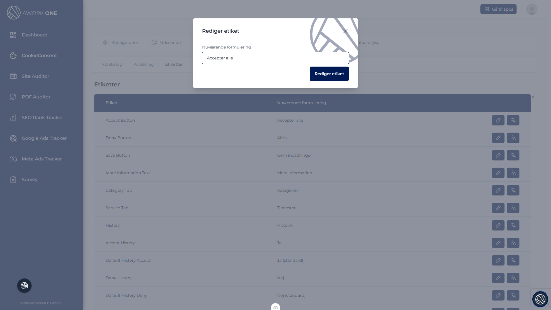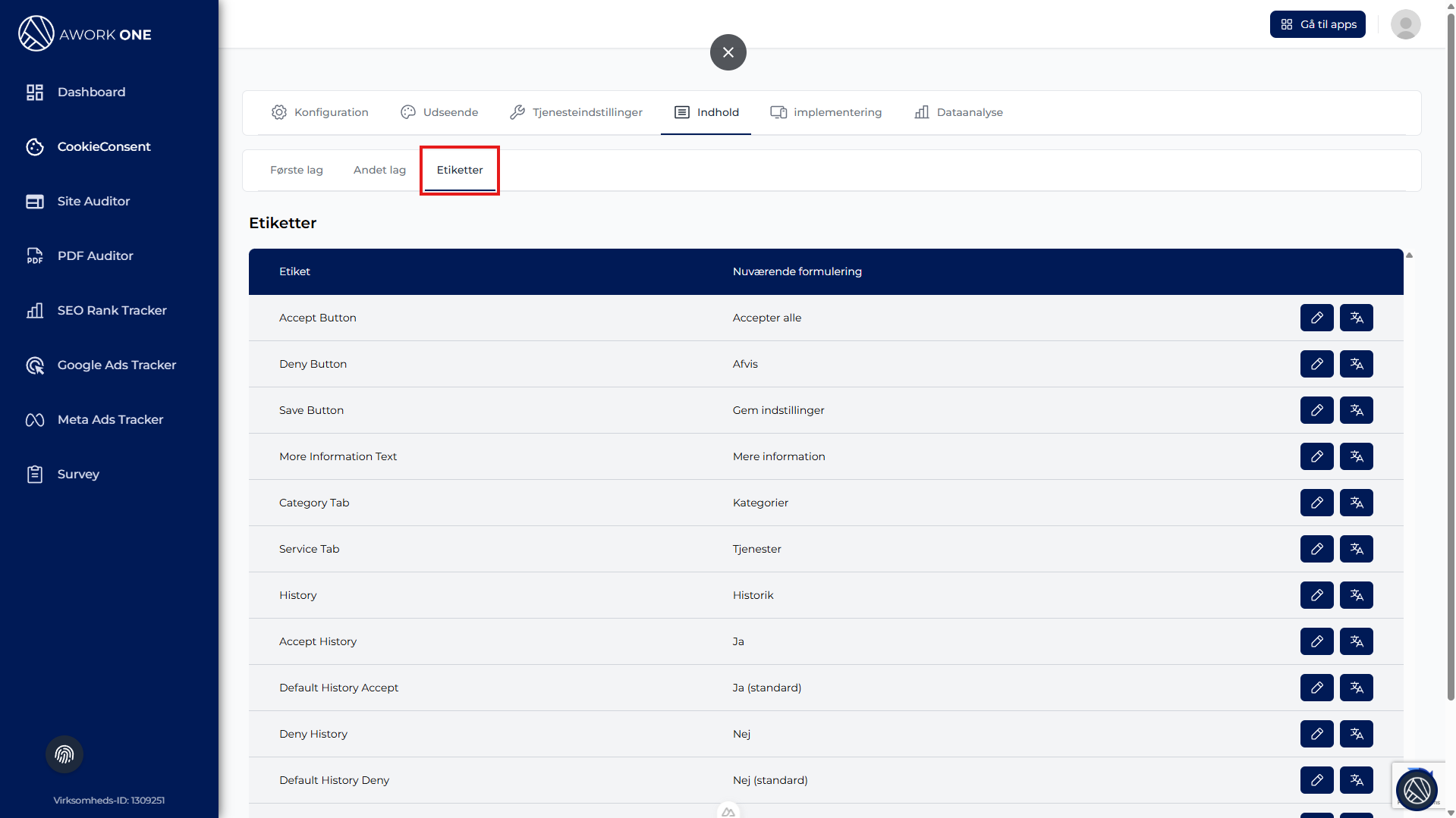 Trin 1: I Indhold → Labels skal du finde den label, du vil ændre.