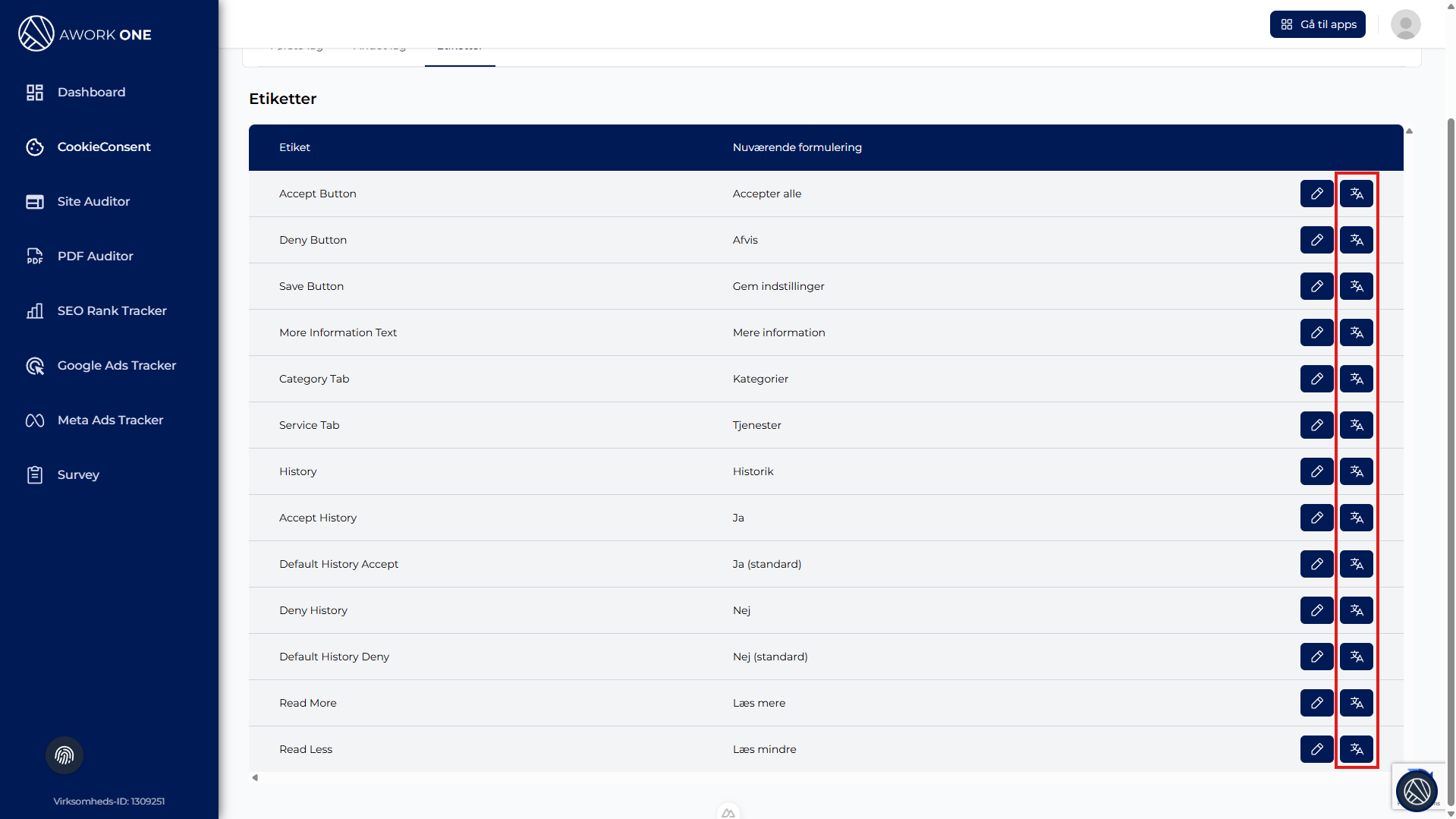 Trin 3: Klik på sprog-/flagikonet ud for labelen.