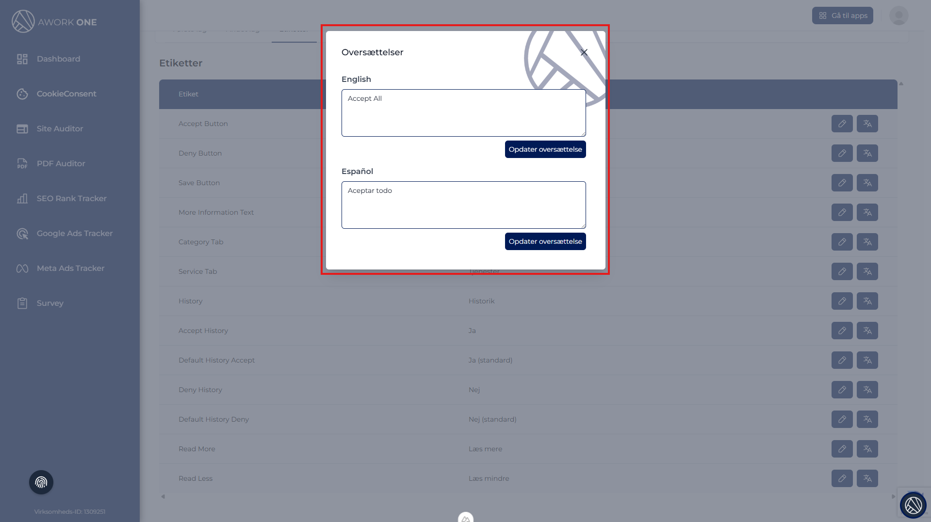 Trin 5: Klik på Opdater oversættelse for hvert sprog.