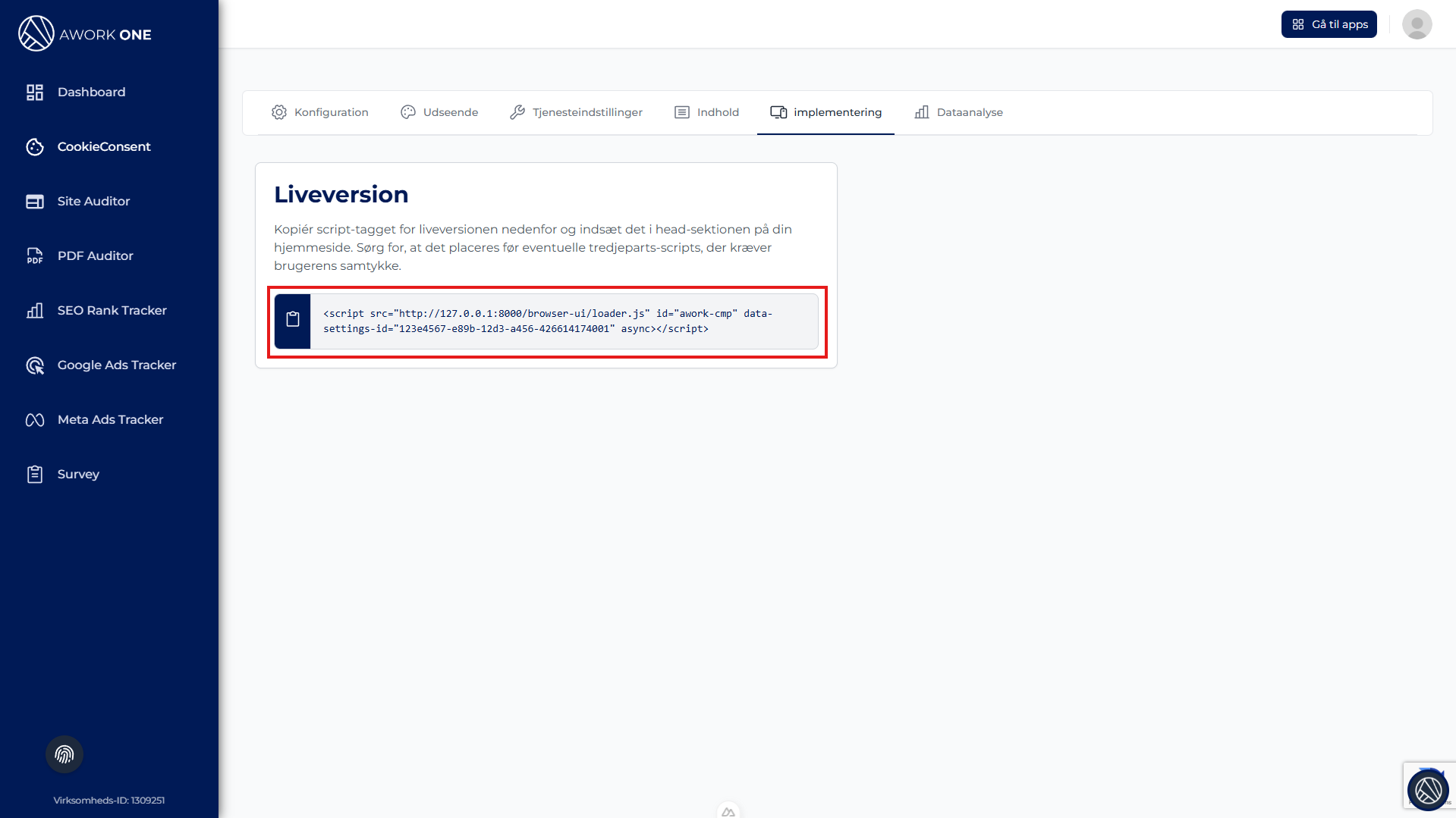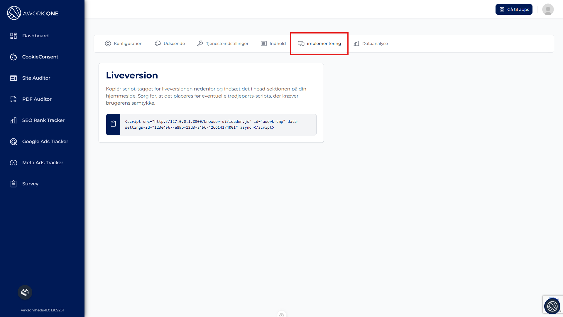Hvis banneret vises, og samtykket gemmes korrekt, er implementeringen gennemført.