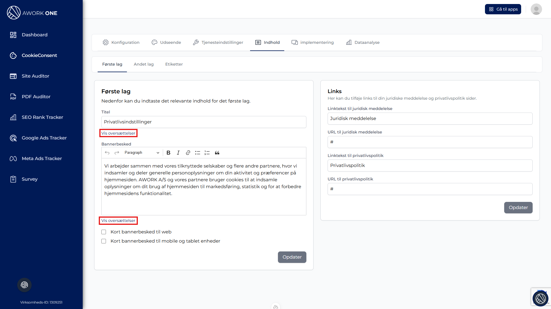 Trin 2: Klik på Vis oversættelser for at administrere flersprogede versioner, hvis din CMP understøtter flere sprog.
