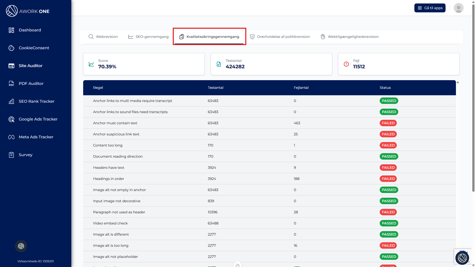 Viser det samlede antal QA-kontroller, der er udført på tværs af alle sider.