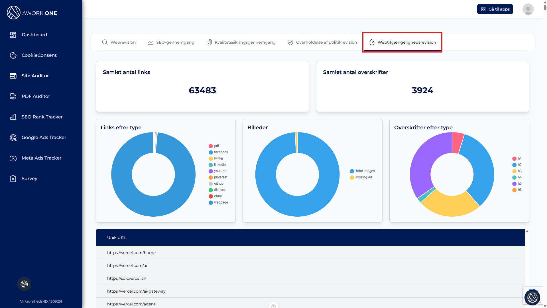 Dette åbner audit-dashboardet for det valgte website.