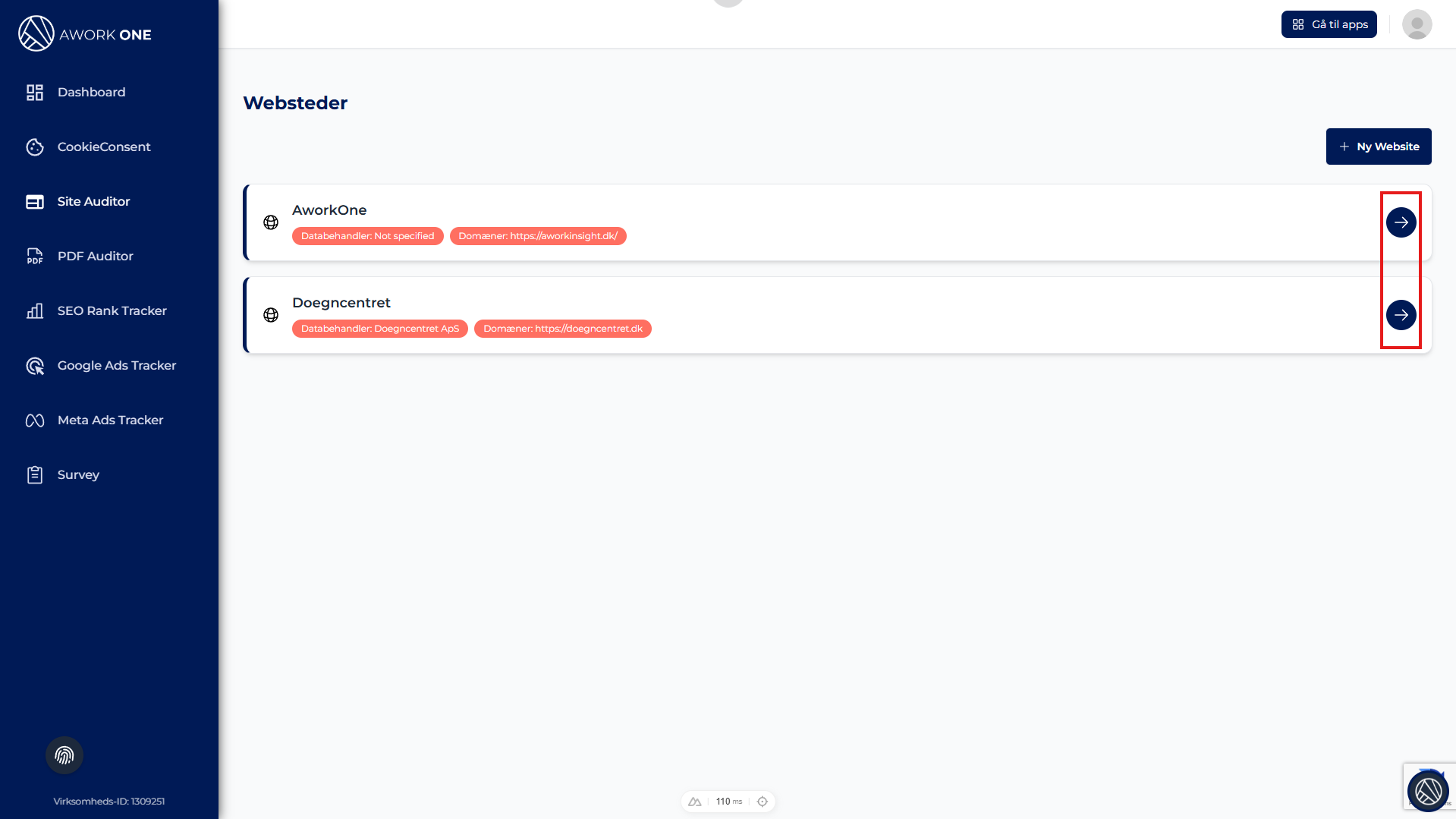 Trin 2: Klik på pil-ikonet (→) ud for det website, du vil analysere.