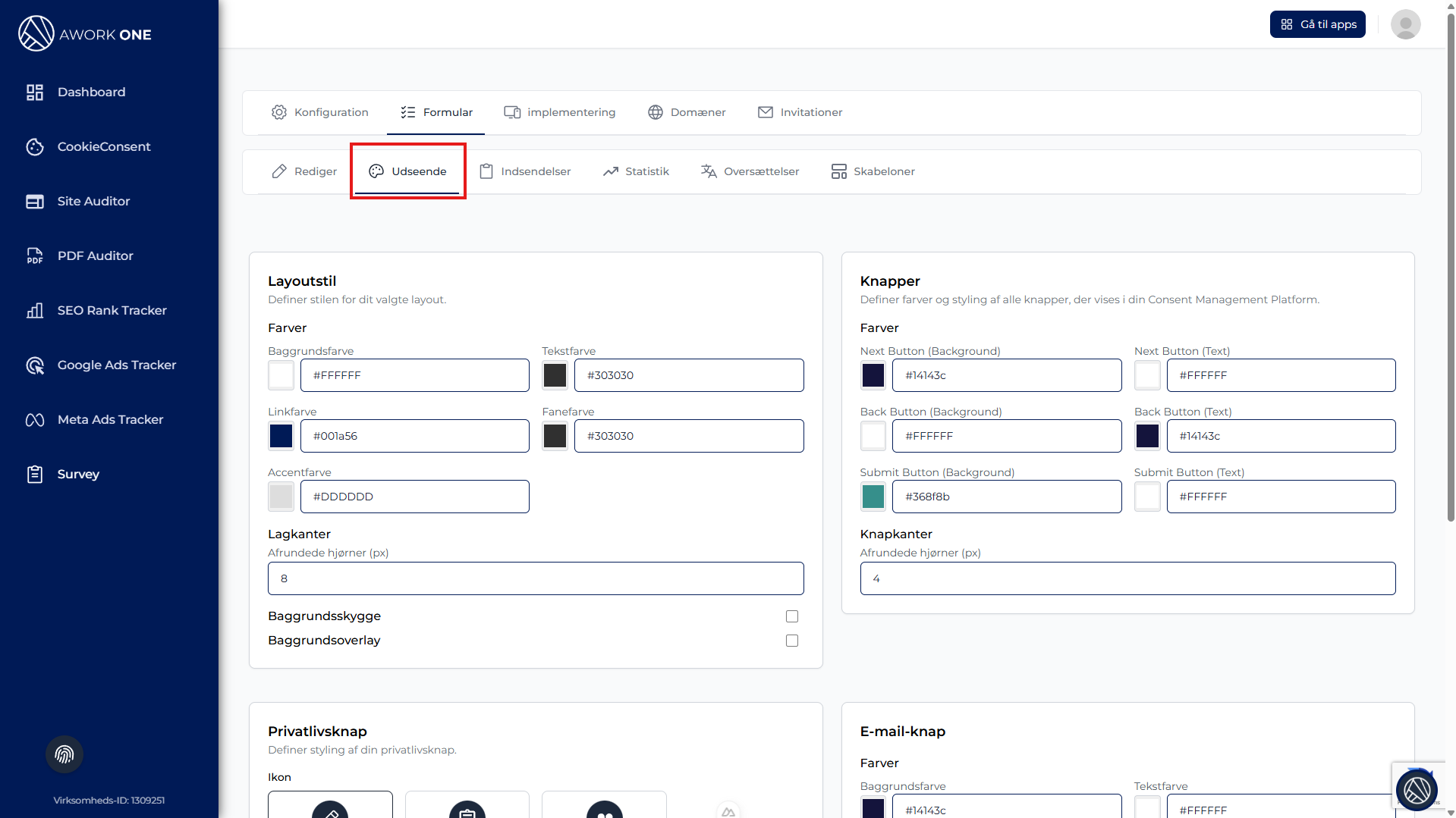 Trin 2: Tilpas knapteksten (f.eks. “Start spørgeskema”).