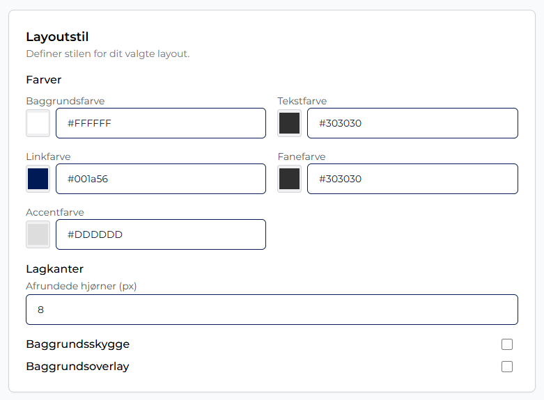 Trin 1: Justér den overordnede layoutstil, herunder: