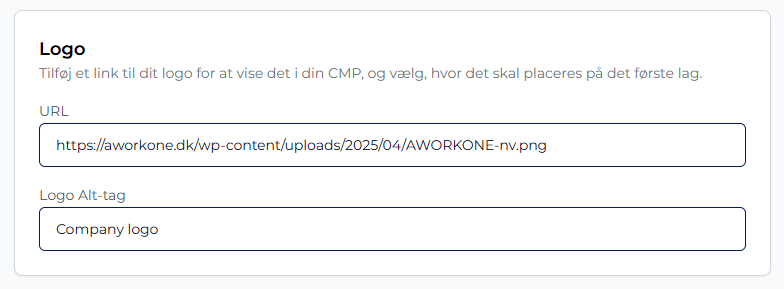 Trin 1: Indsæt en offentlig billed-URL til dit logo (PNG, JPG eller SVG).