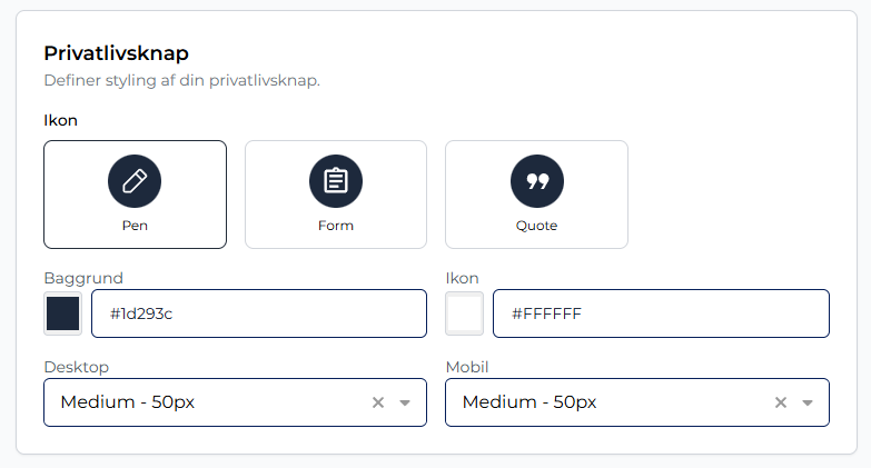Trin 1: Vælg en ikonstil for privatlivsknappen (Pen, Formular eller Citat).