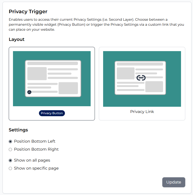 Privacy Banner – Displayed at the bottom of the page and less intrusive.