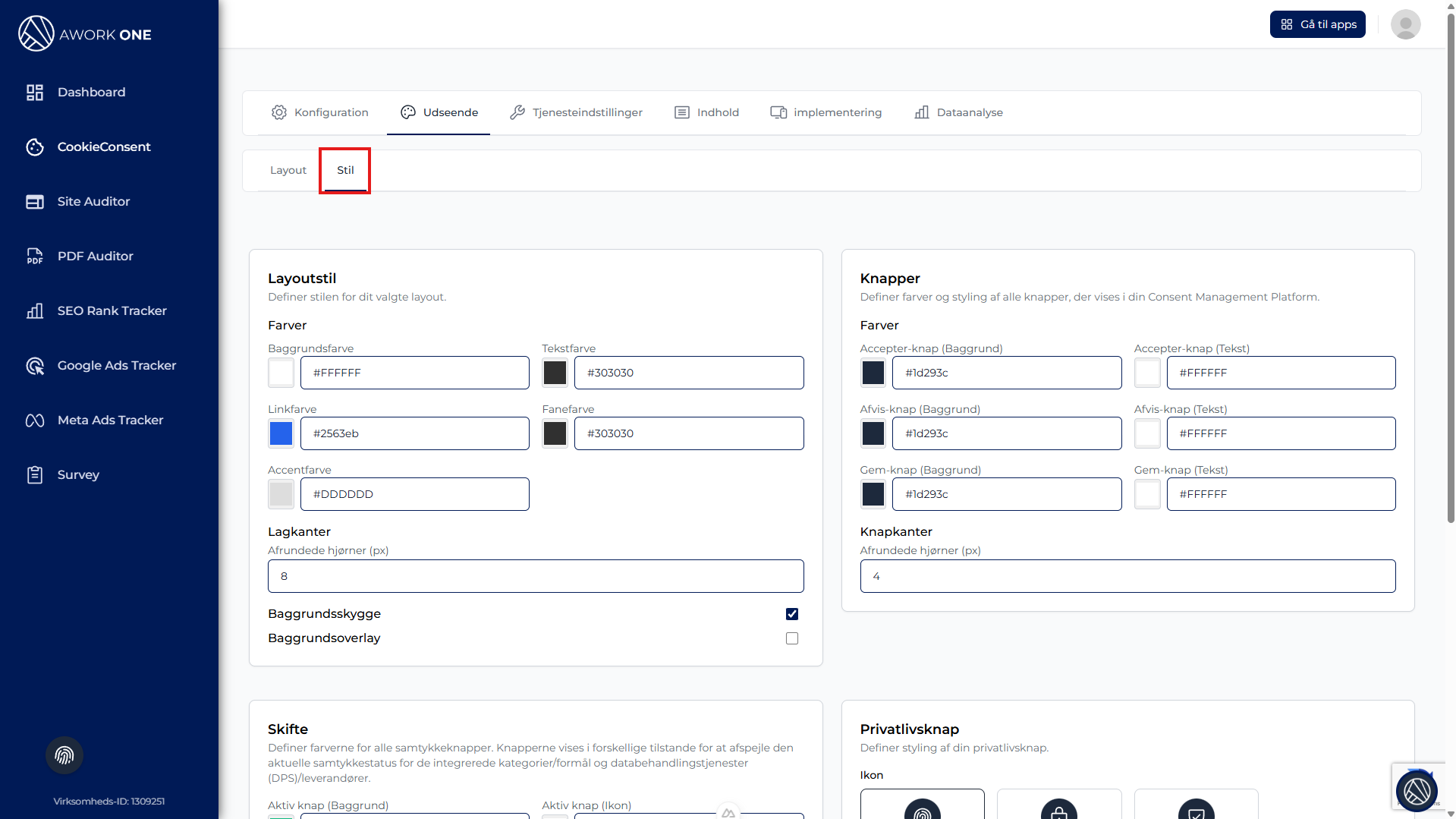 Step 1: Under Layout Style, define the global colors used across all CMP components: