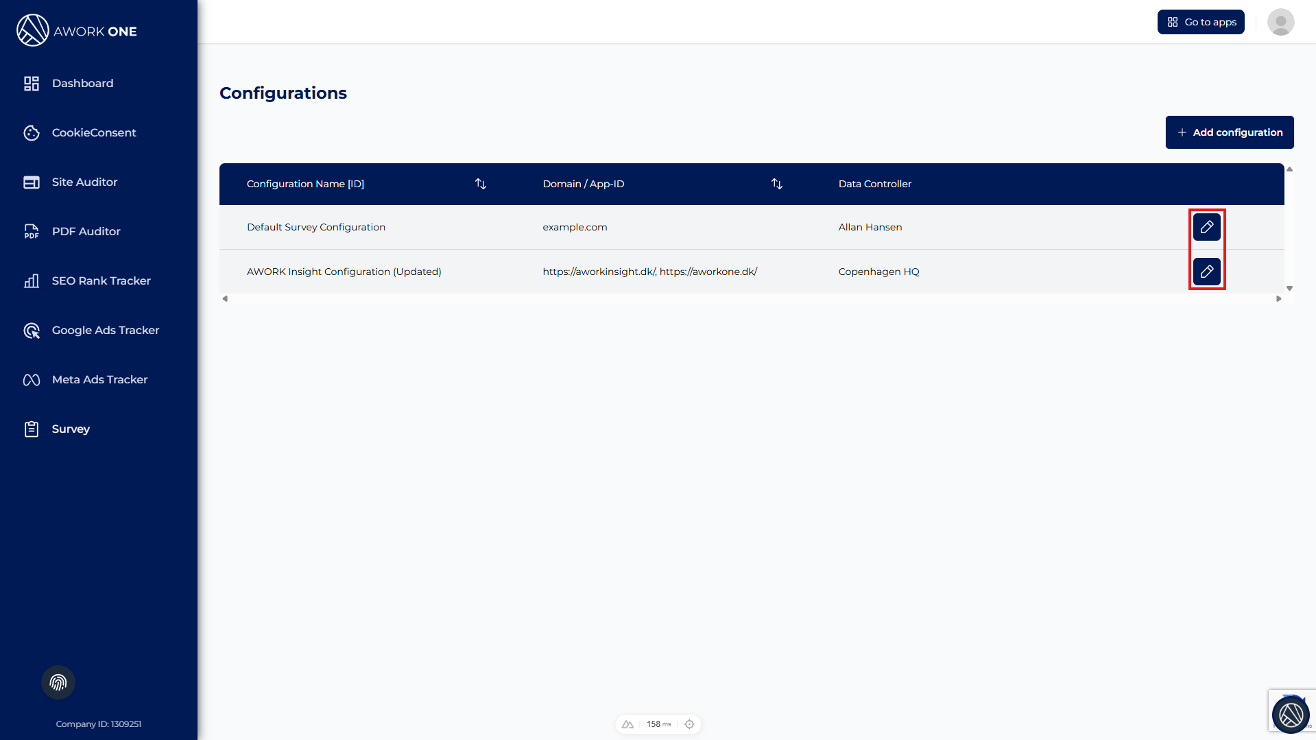 Step 3: Click the Edit (pencil) icon next to the configuration.