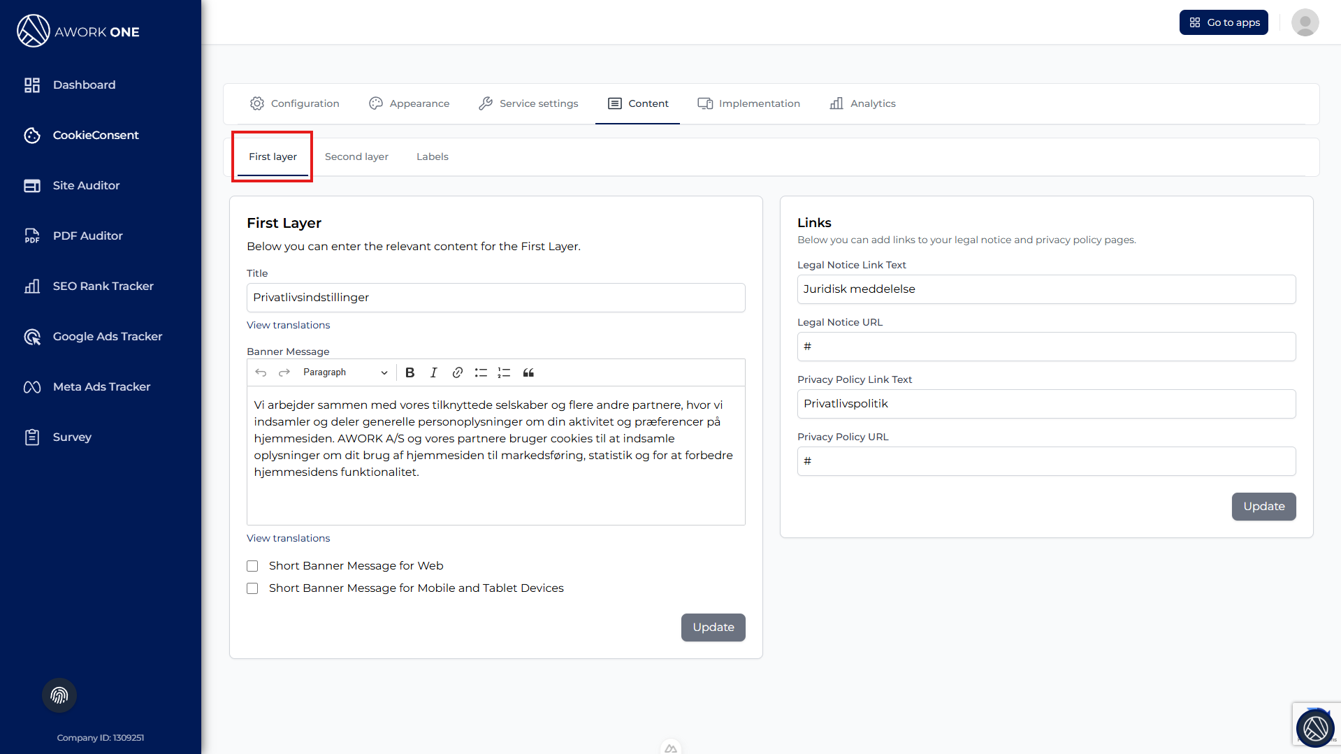 Step 1: Enter the title displayed at the top of the cookie banner