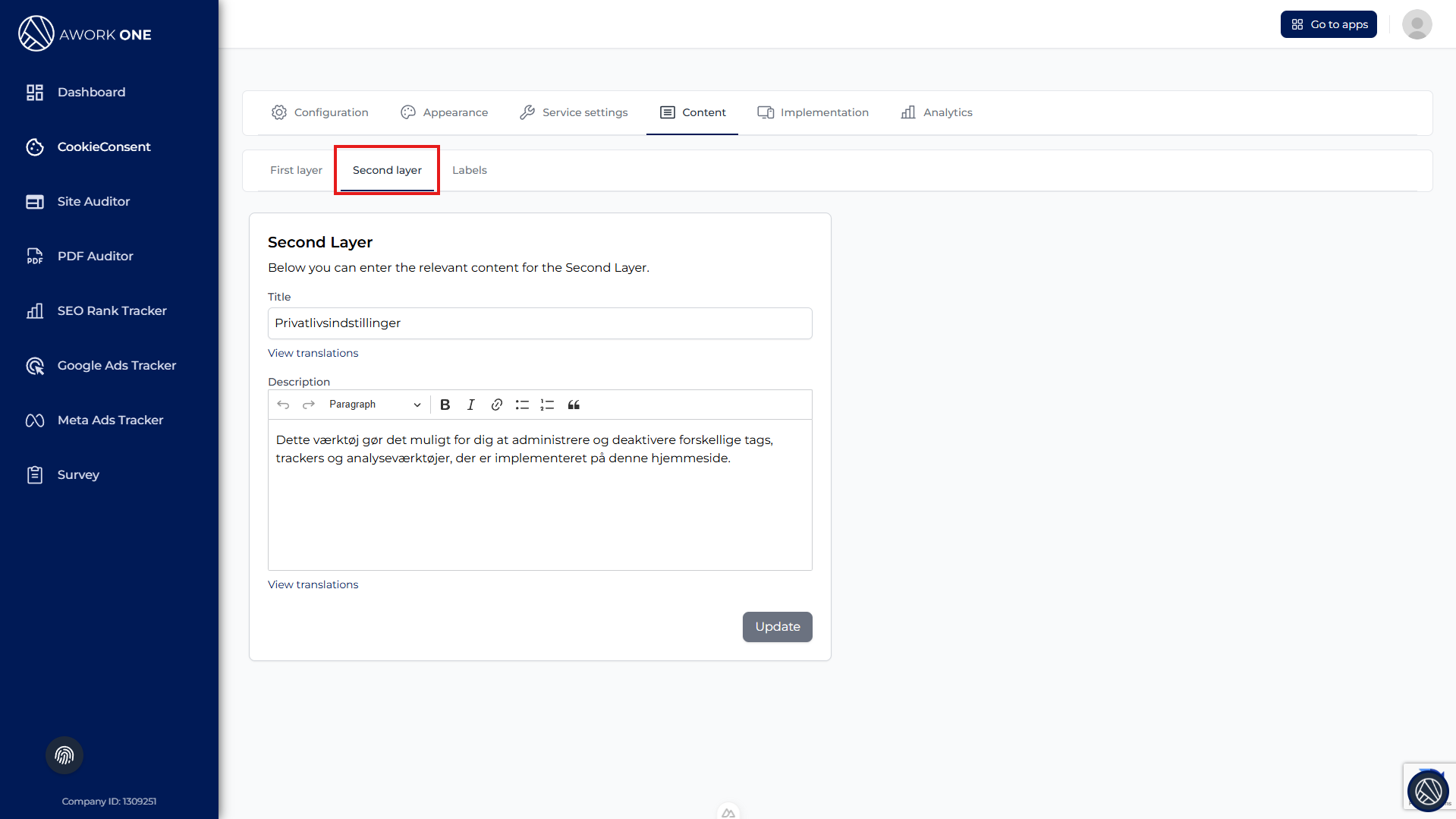Step 1: Enter the description explaining what users can do in the Second Layer, such as: