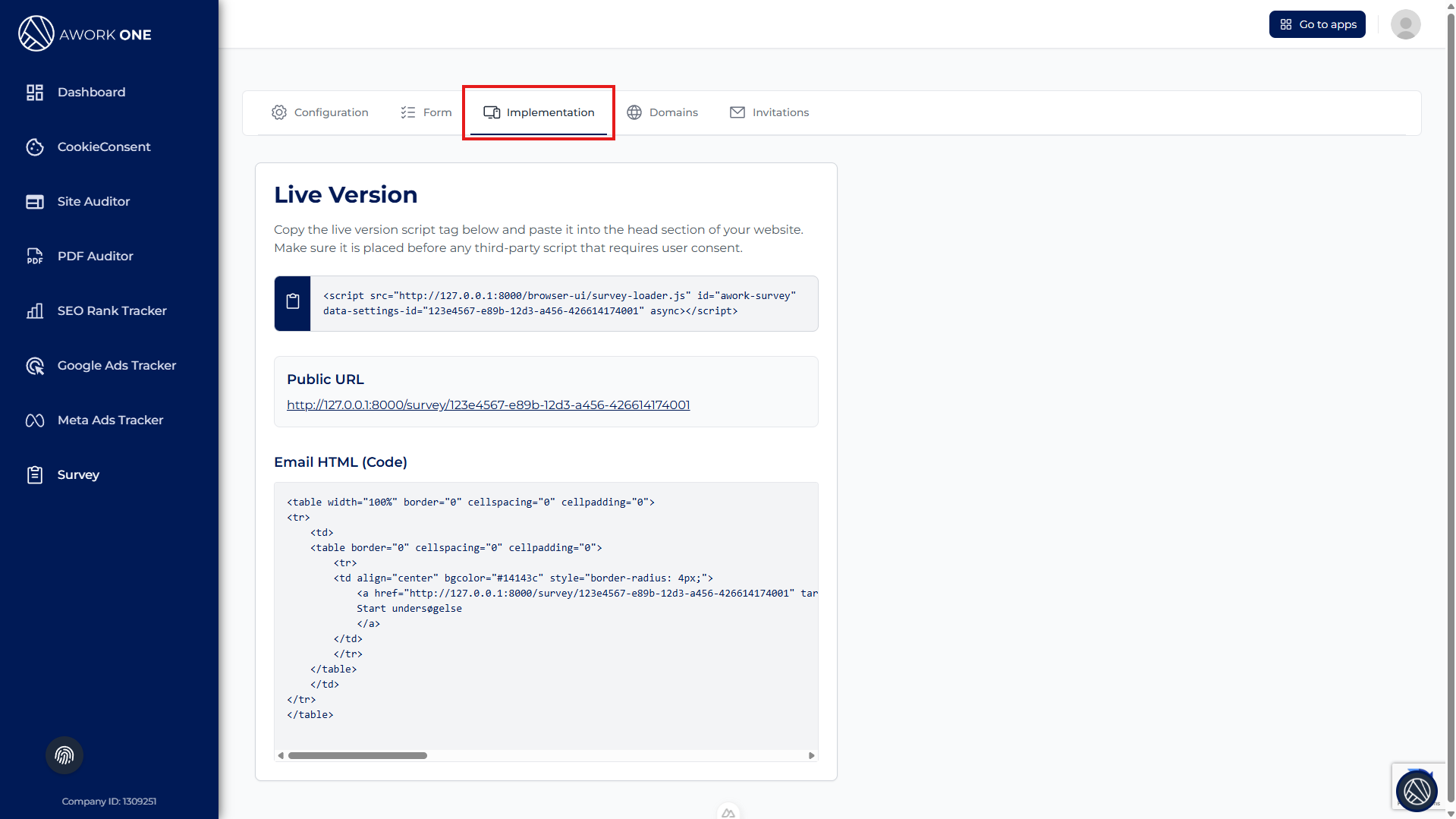 Placing the script outside the <head> may cause the survey to load incorrectly.