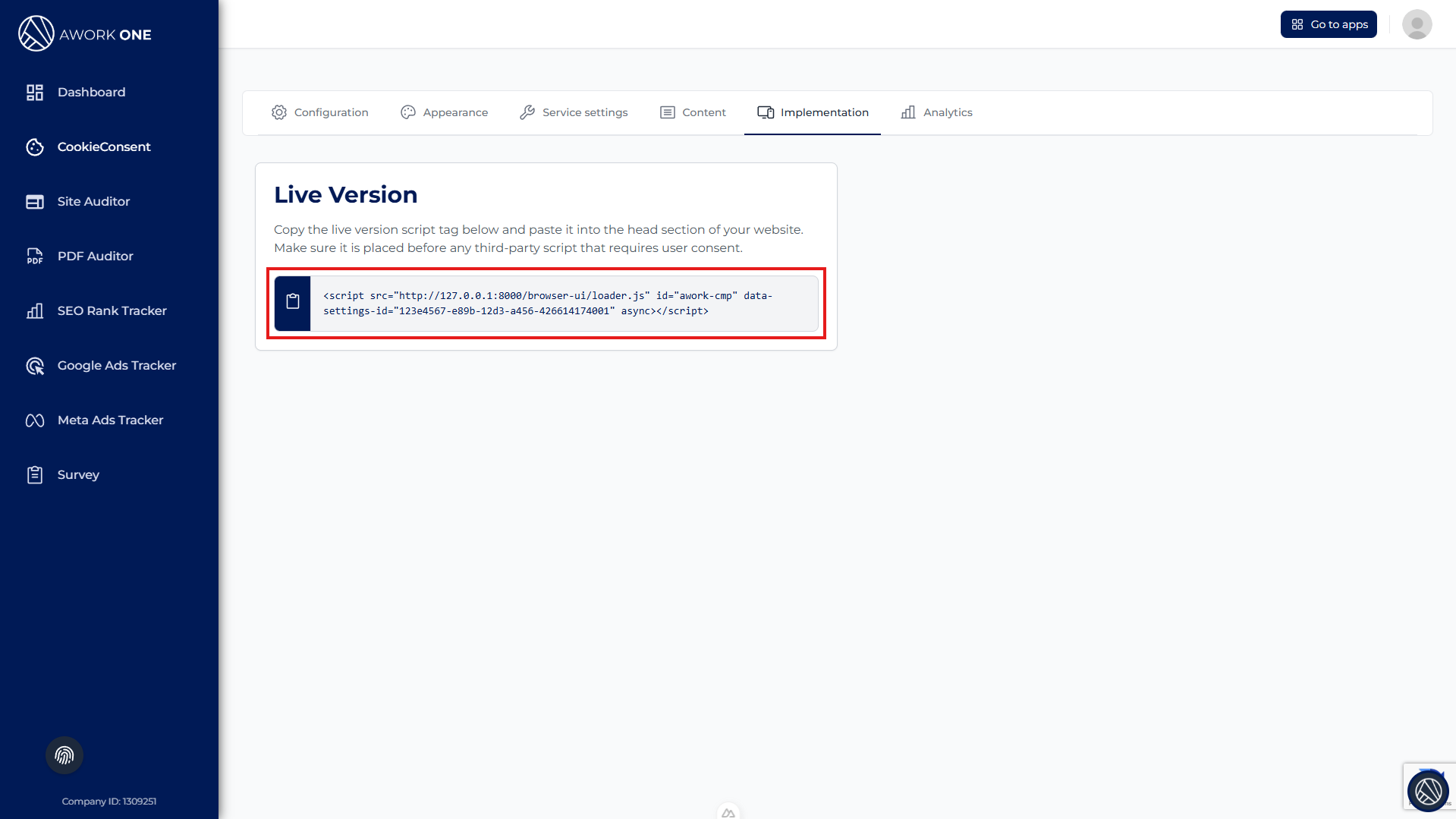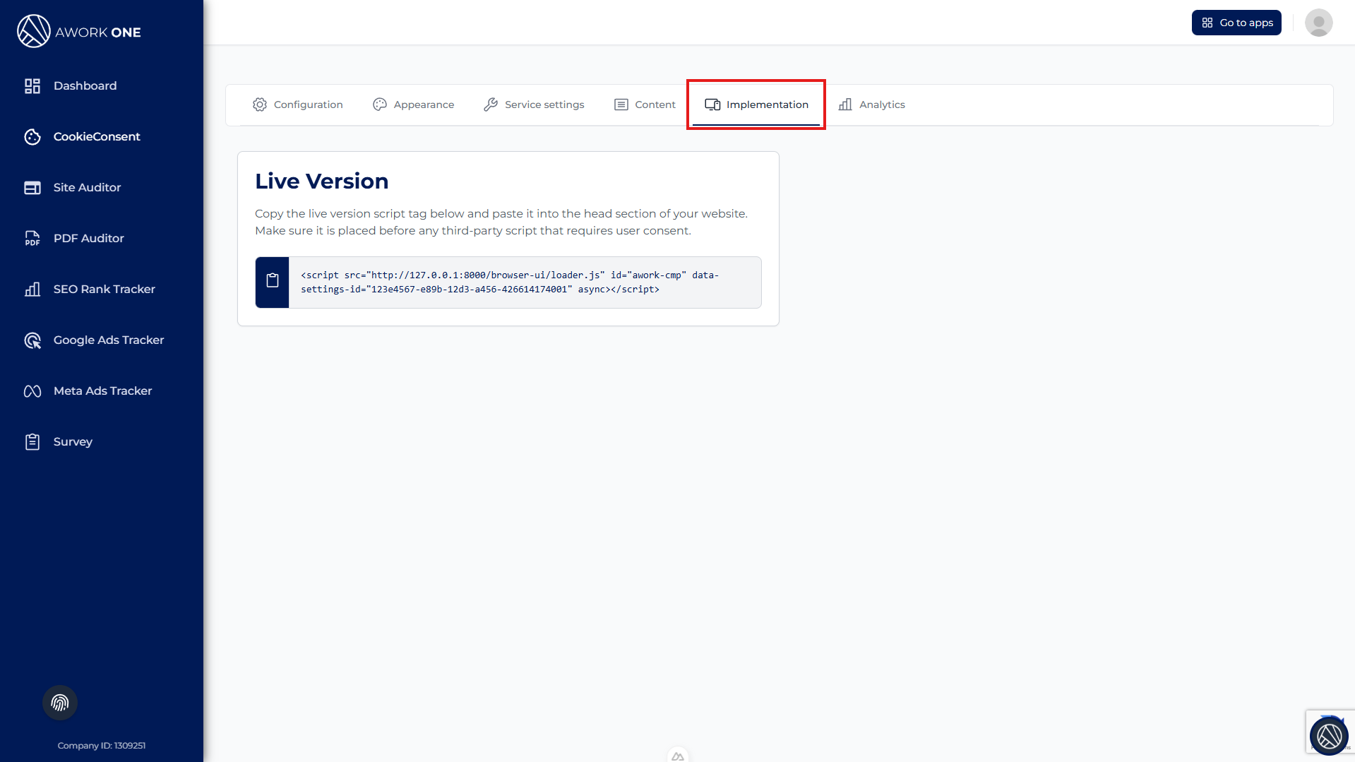 Step 1: Copy the script from the Implementation tab.