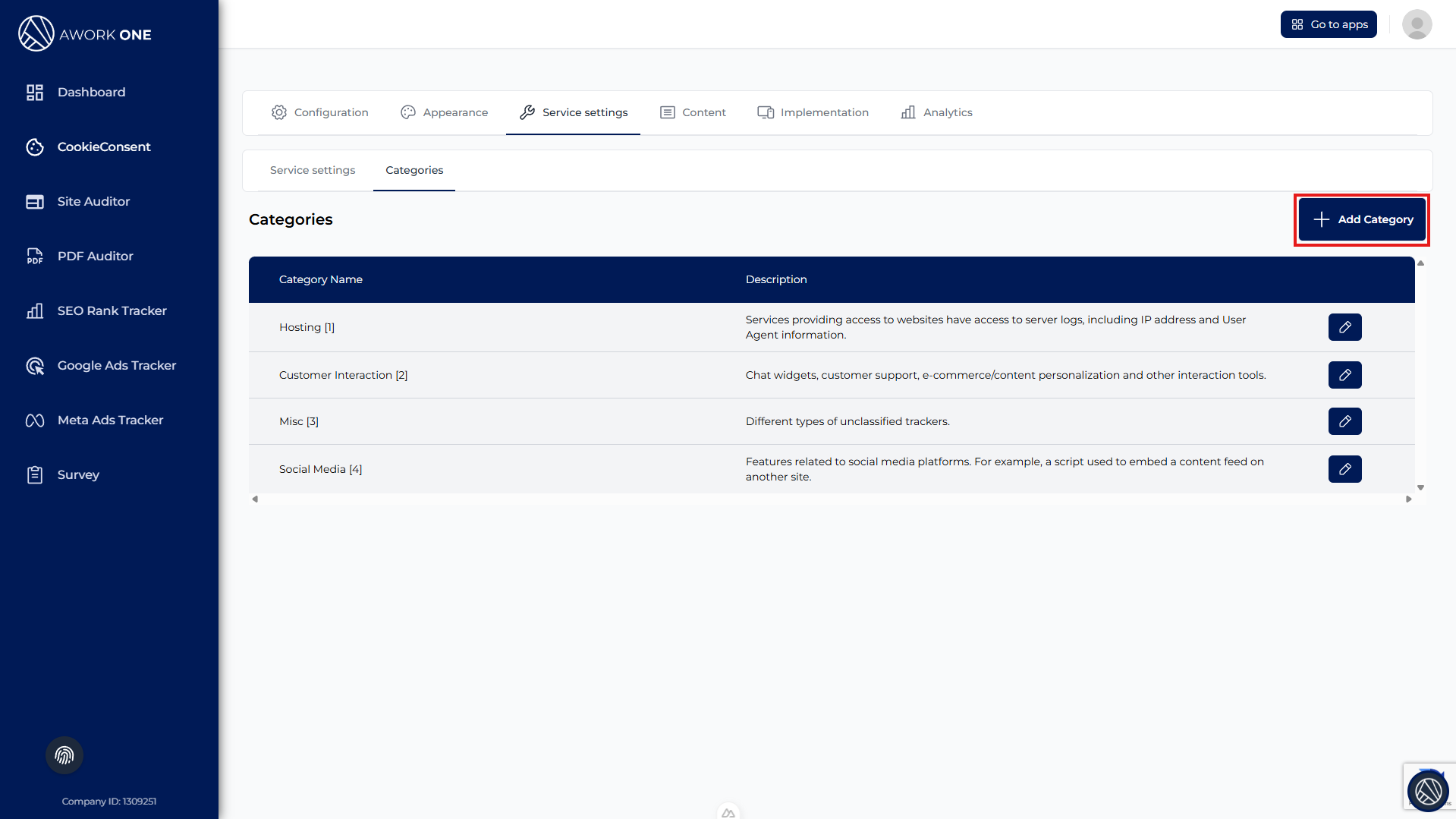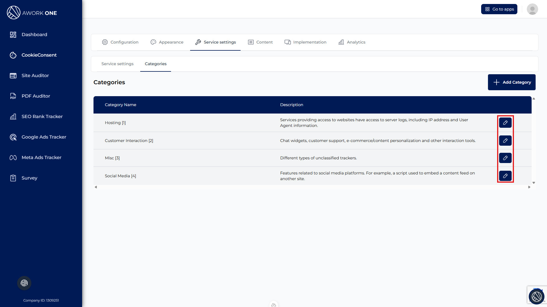 Step 1: Click the edit (pencil) icon next to a category.