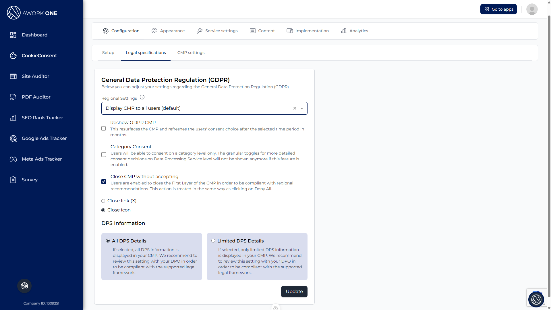 Show CMP to EU users only – Displays the CMP only to users in the EU.