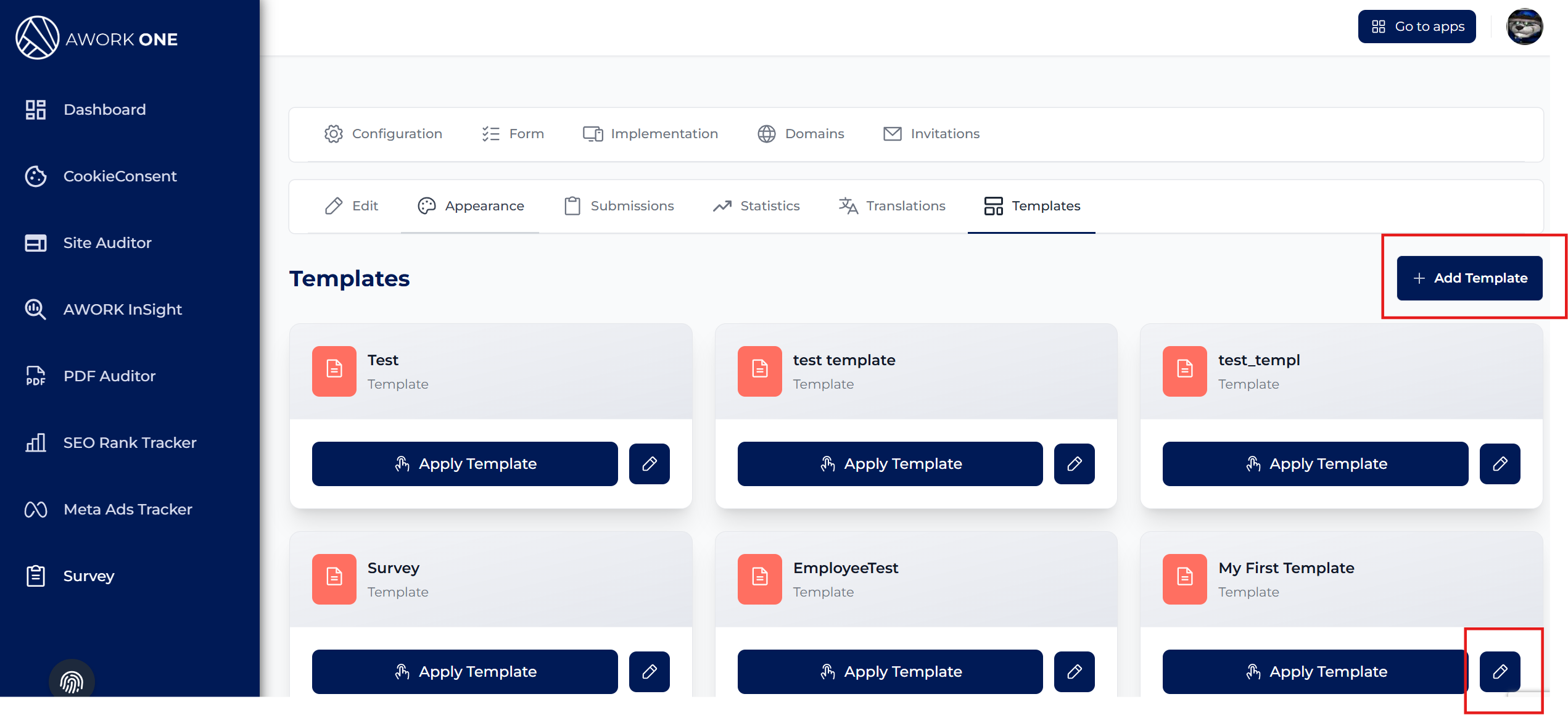 Step 10: Click the pencil icon to modify the existing template or click add template if you want to create a new one.