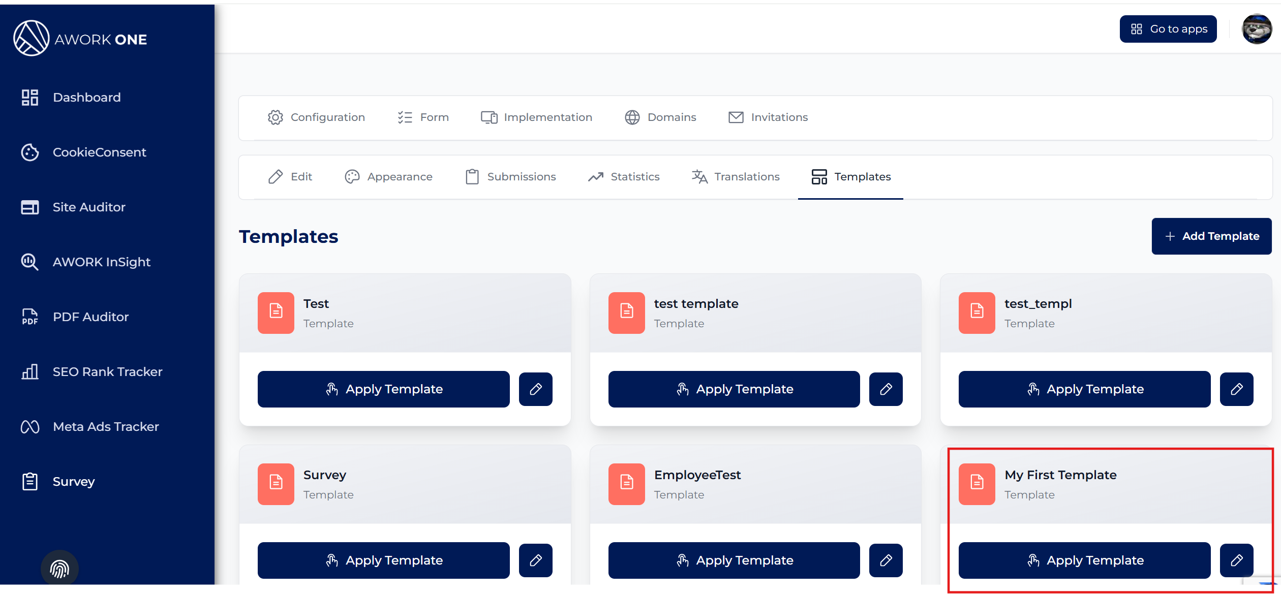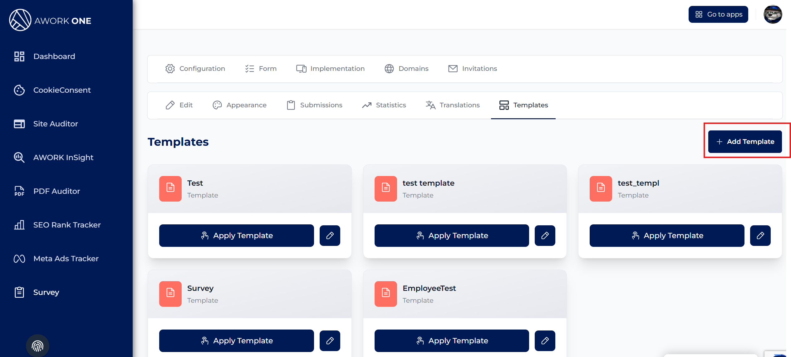 Step 4: Click the Add Template to create a new template.
