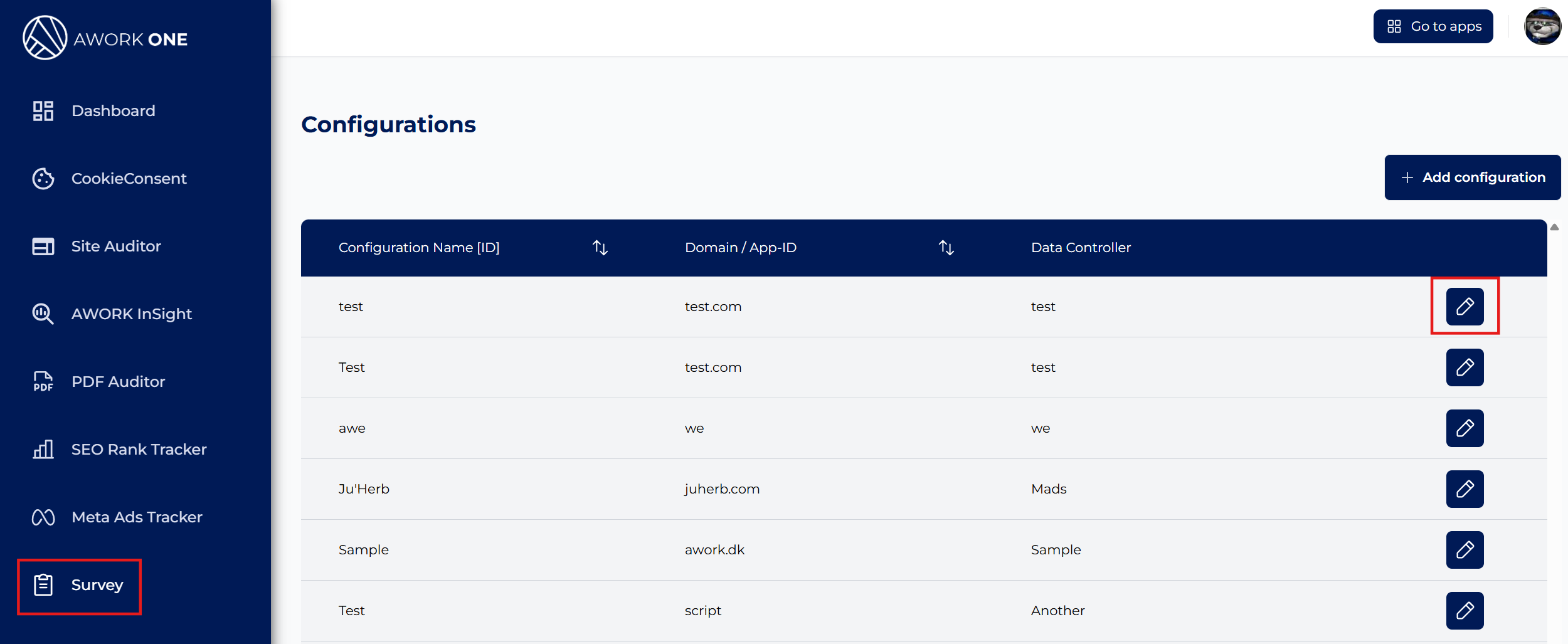 Step 2: Select the Survey configuration you want to work on.