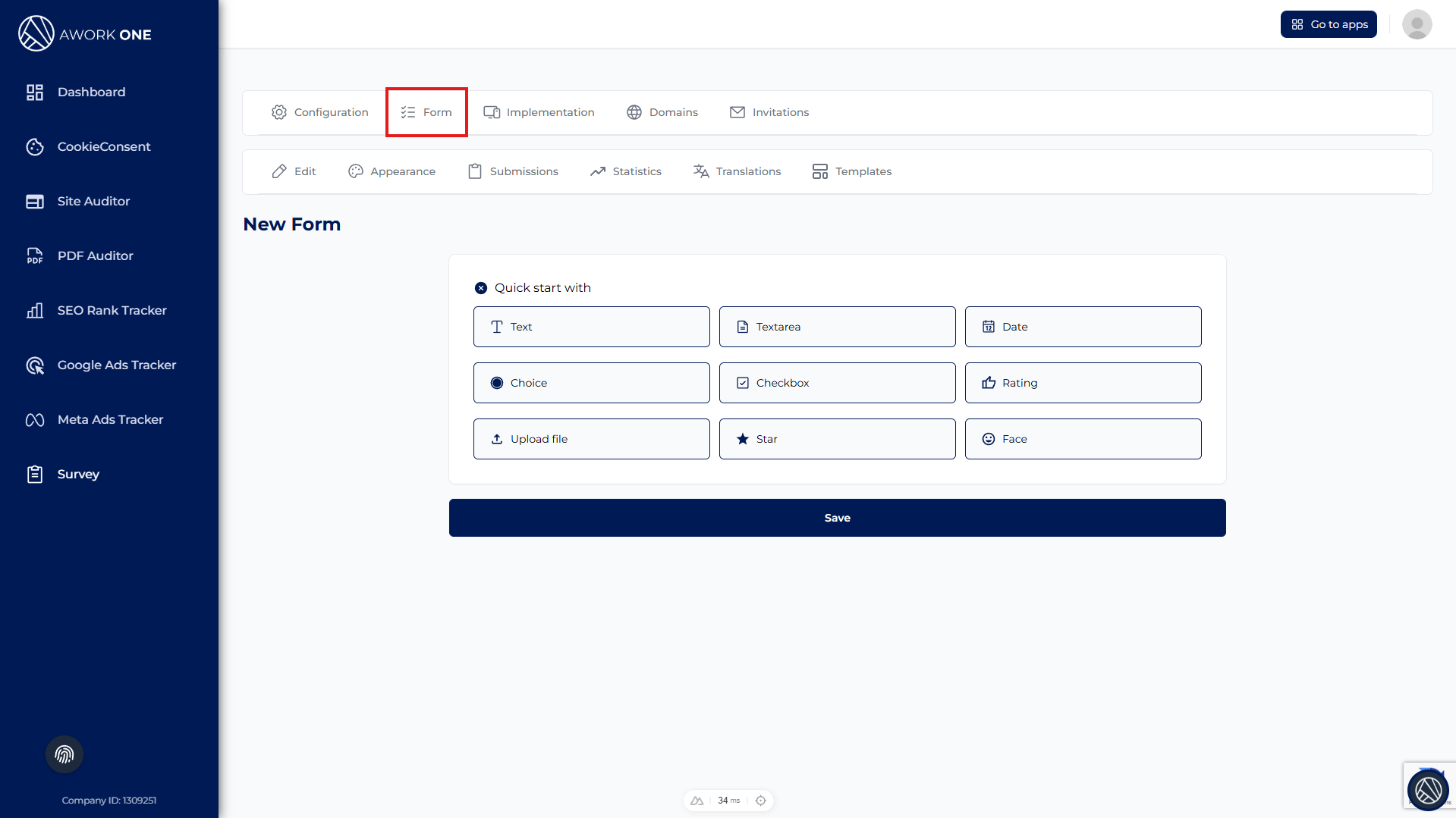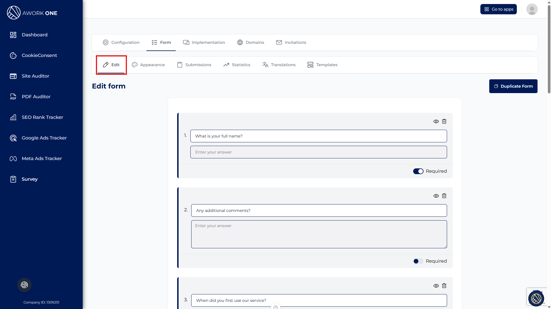 Step 1: Open Survey, select your survey configuration, and go to the Form tab.