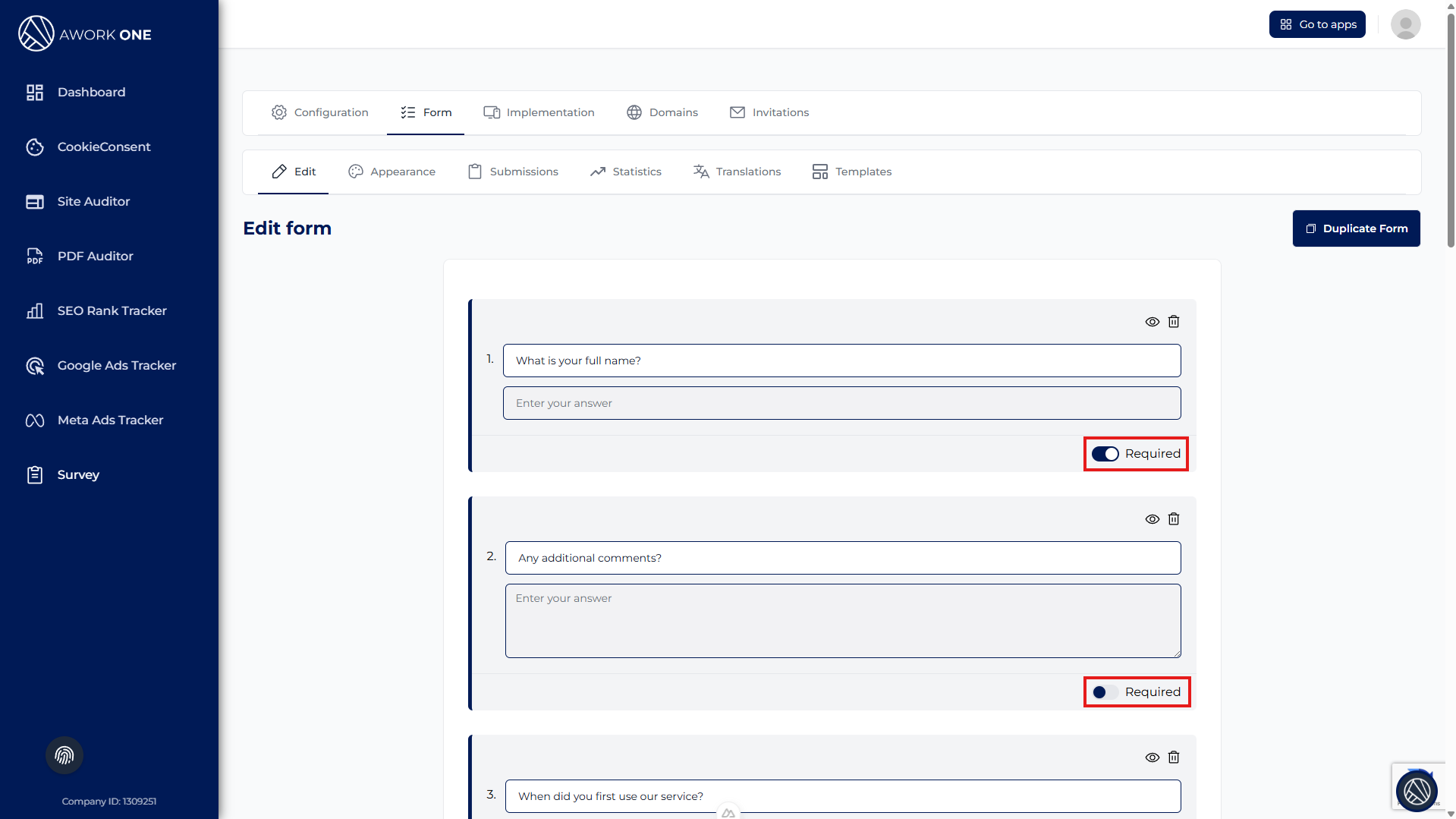 Step 3: Enable Required if the question must be answered.