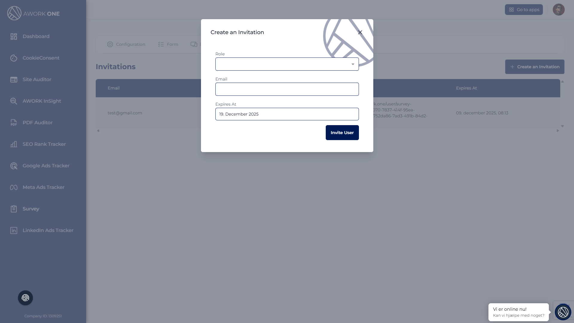 Step 3: Click Invite User to generate the invitation.