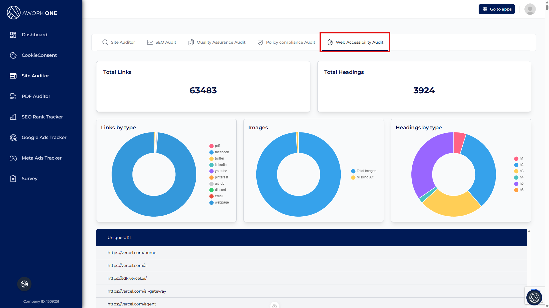 Step 1: At the top of the audit dashboard, click the Web Accessibility Audit tab.