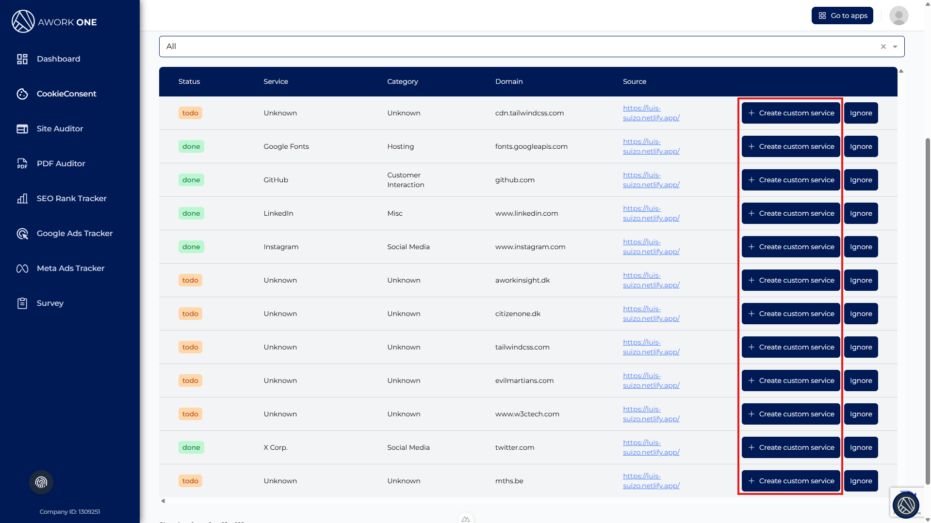 Services that require action (Todo)