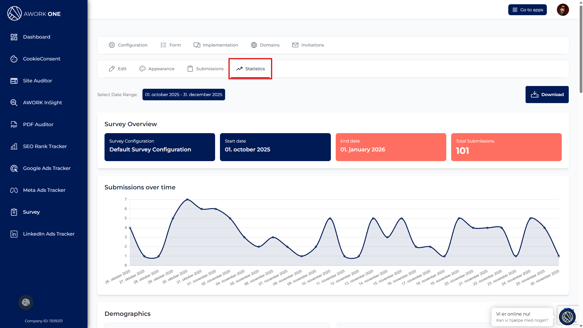 Step 1: Click Download to export survey statistics.